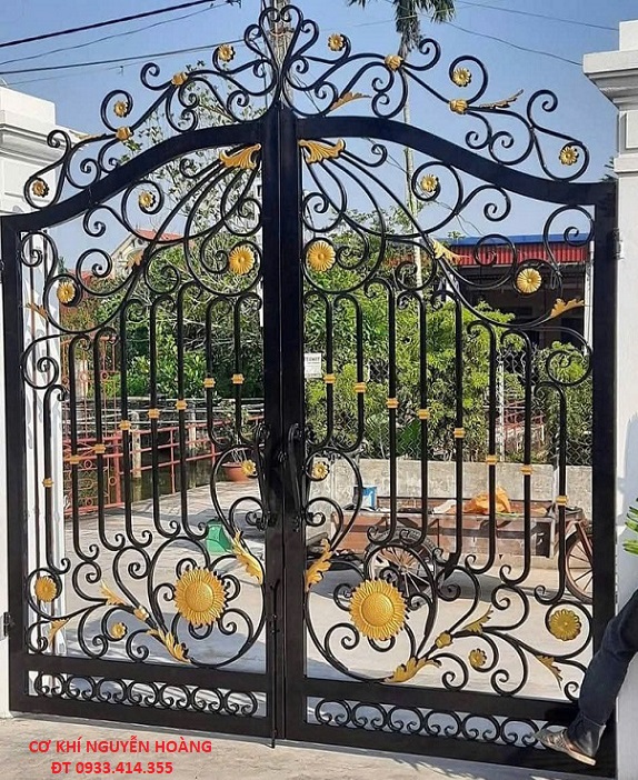 - Cửa cổng sắt đẹp trang trí bằng các bông gang đẹp mắt gây ấn tượng. Như hình hoa, chim cảnh, rồng phượng càng tăng thêm sự đẳng cấp cho căn nhà bạn.