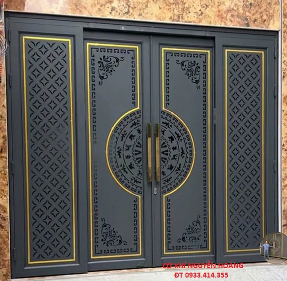 - Cửa cổng sắt mỹ thuật, cửa sắt nghệ thuật cổ điển màn đến vẽ đẹp sang trọng, thẫm mỹ cho căn nhà.