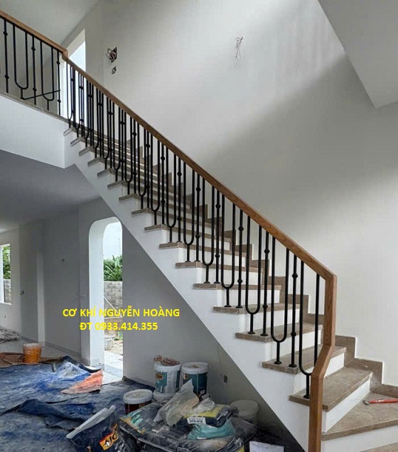- Lan can sắt tay vịn gỗ căm xe.